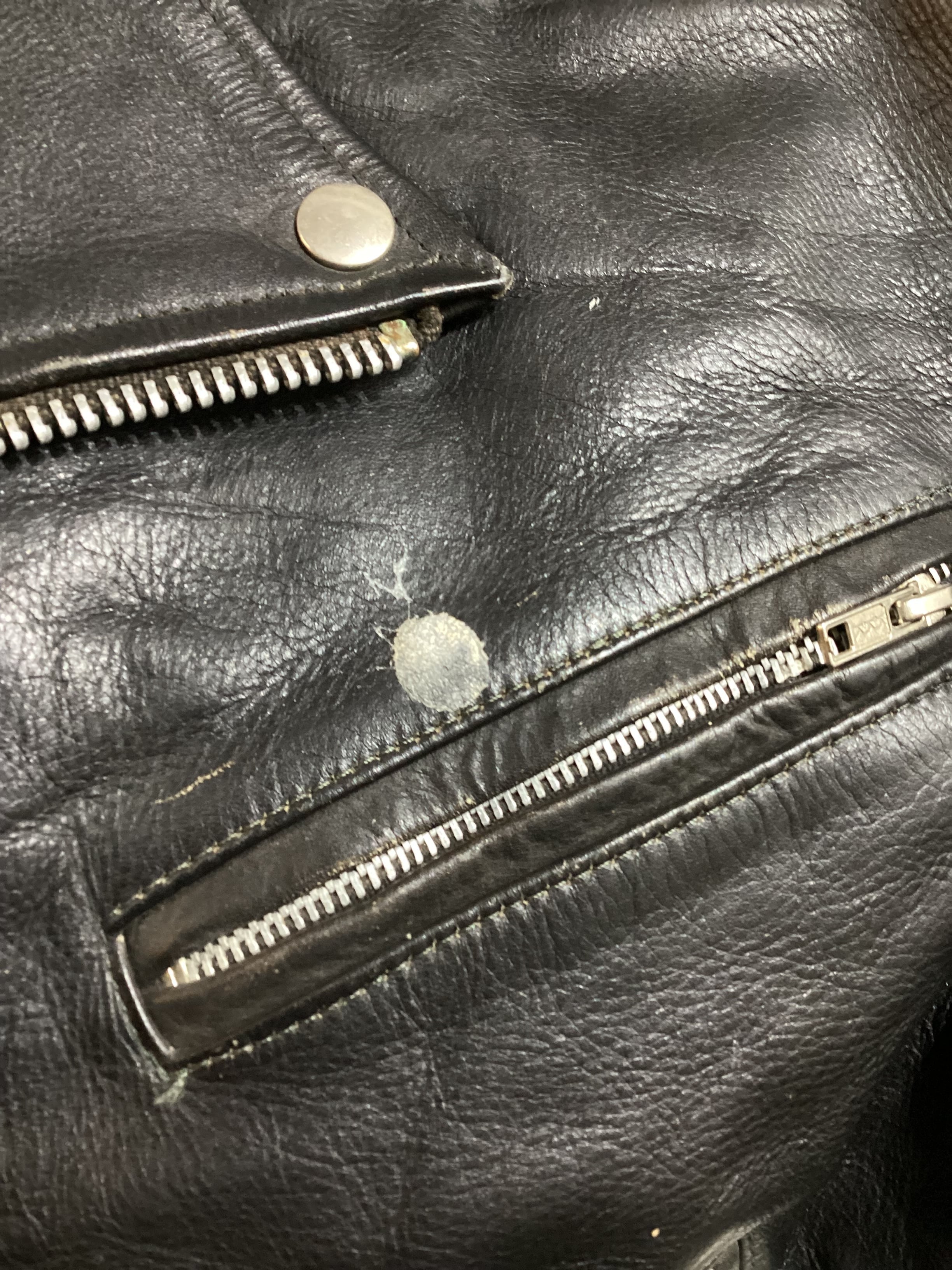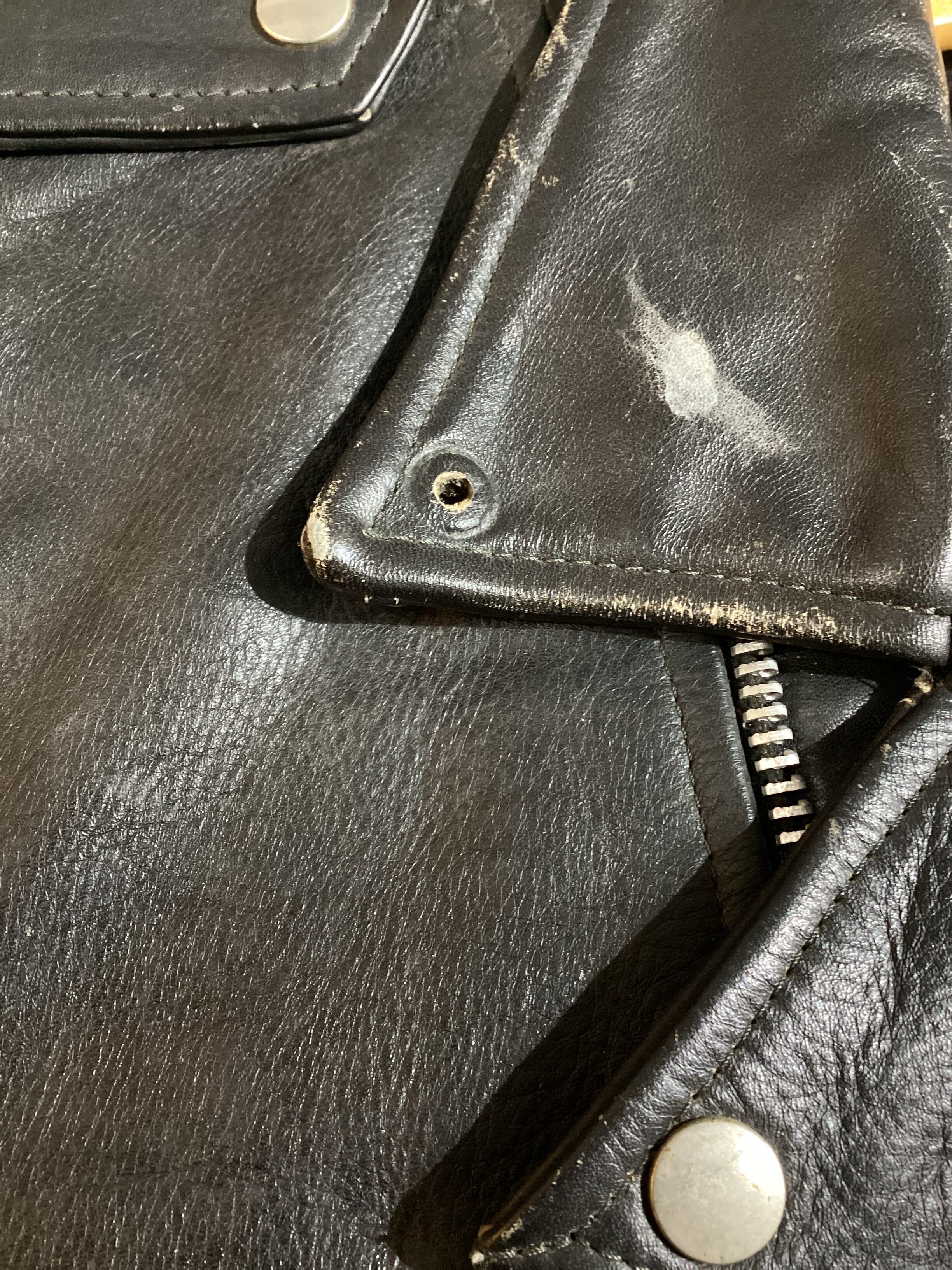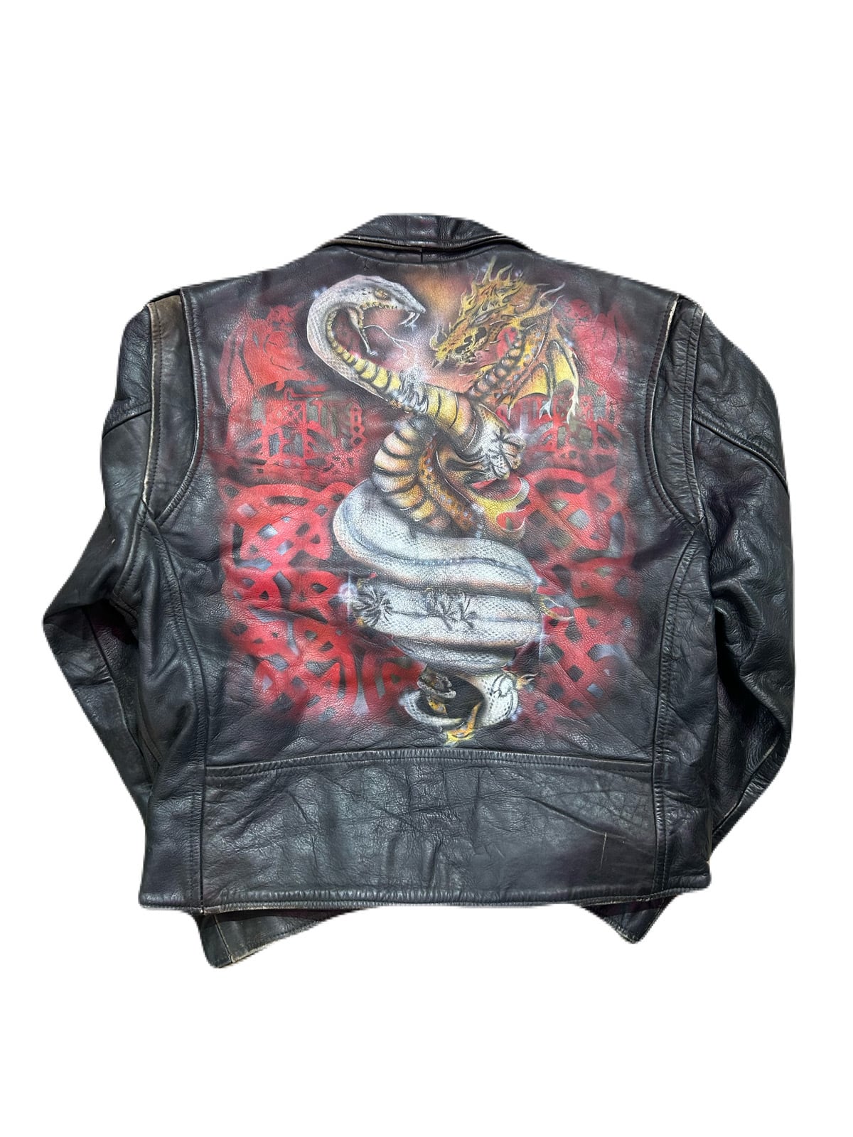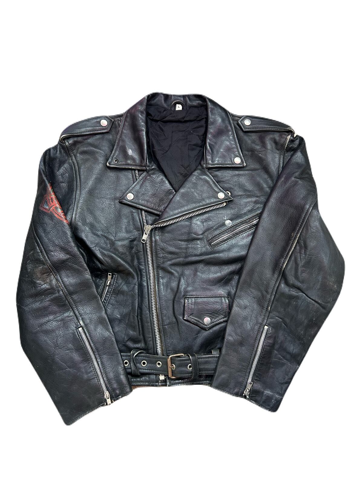 80~90‘s Hand painted Double leather riders jacket